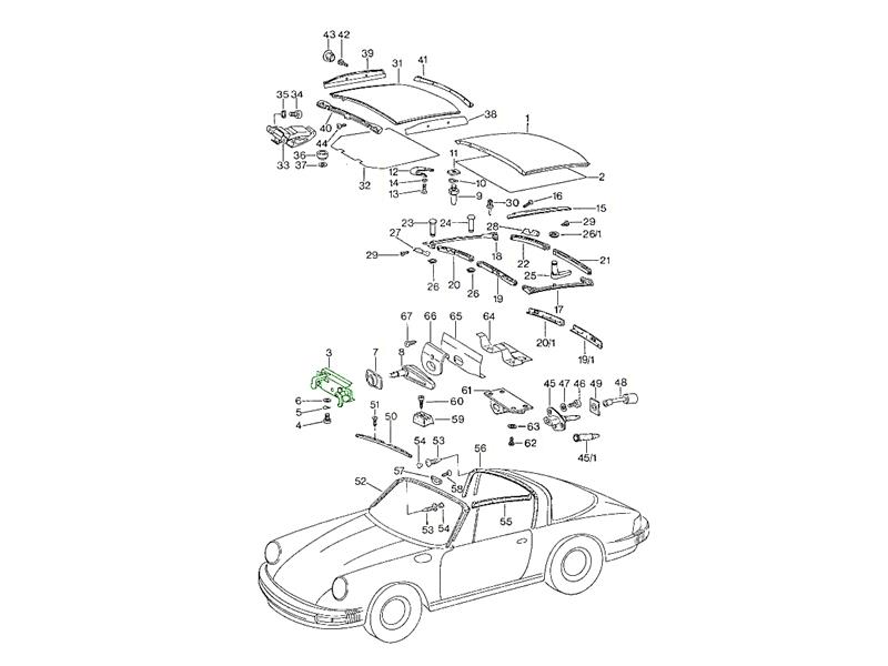 - The Targa roof or Convertible top mechanism on classic 911s uses mounts/attachments to latch, pivot or tension the roof panel correctly.