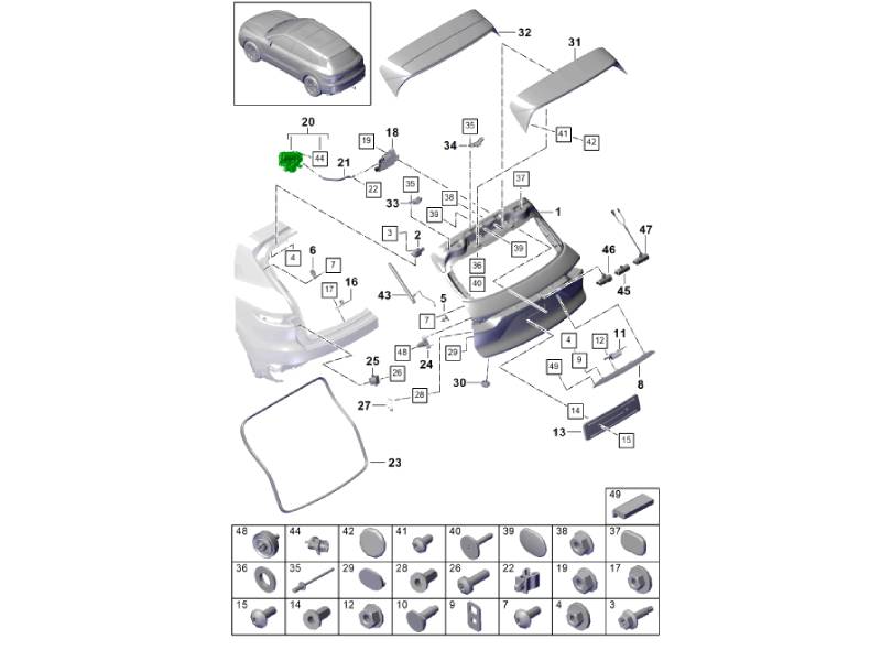 This OE MATCH rear lid power latching motor is an essential component of the power tailgate locking system used on Porsche 9YA Cayenne models. This electric motor controls the automatic latching and secure closing of the rear boot lid once it is lowered into position.