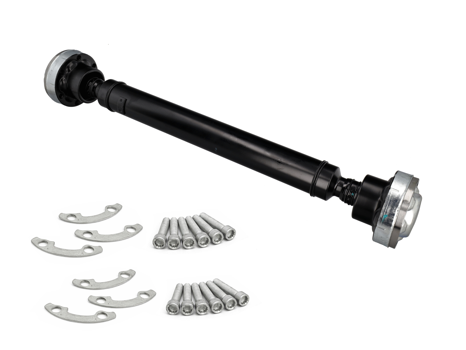This OE Match Front Cardan Shaft Assembly Kit is a complete drivetrain solution for Porsche Cayenne 955 and 957 models. It includes an OE Match front cardan shaft along with genuine Porsche bolts and bolt plates required for secure installation.