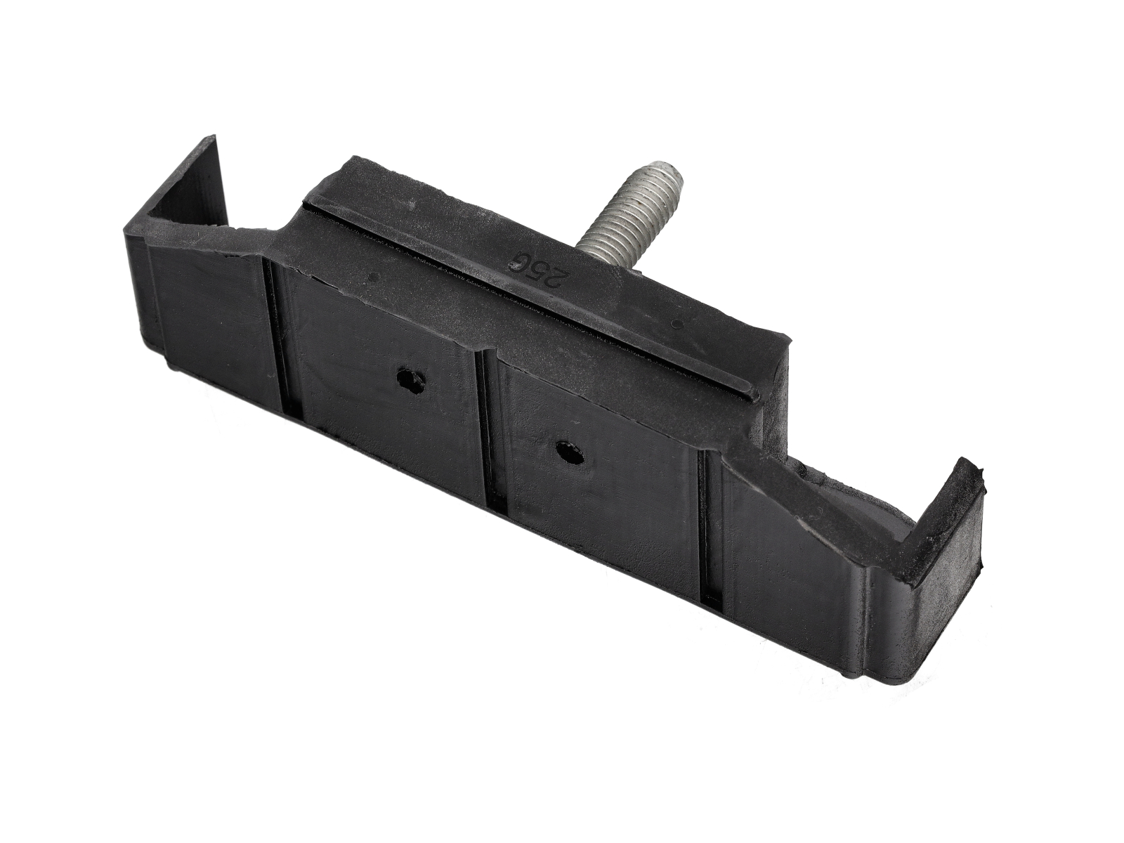 Rear axle carrier mount (also called axle mount) used on Porsche 924, 944 and 968 models. Secures the rear axle carrier/support, ensuring correct geometry, durability and quiet operation.