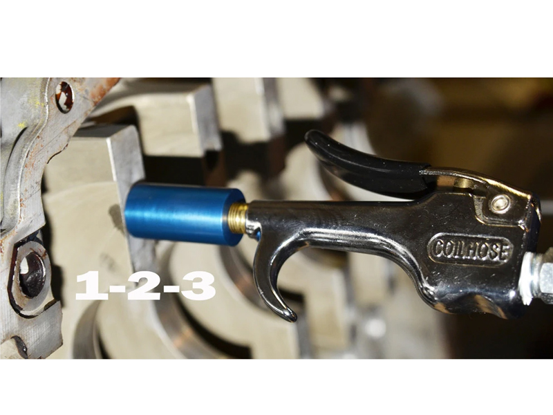 At last an easy way to clean and check the case/piston squirters on 911 cases. Use this precise tool with compressed air and your air gun to force the squirters open and clean them out. This tool seals the galley off at each end and allows the air to be pushed through the squirter orifice. No need to remove/replace squirters or guess whether they are clear.
