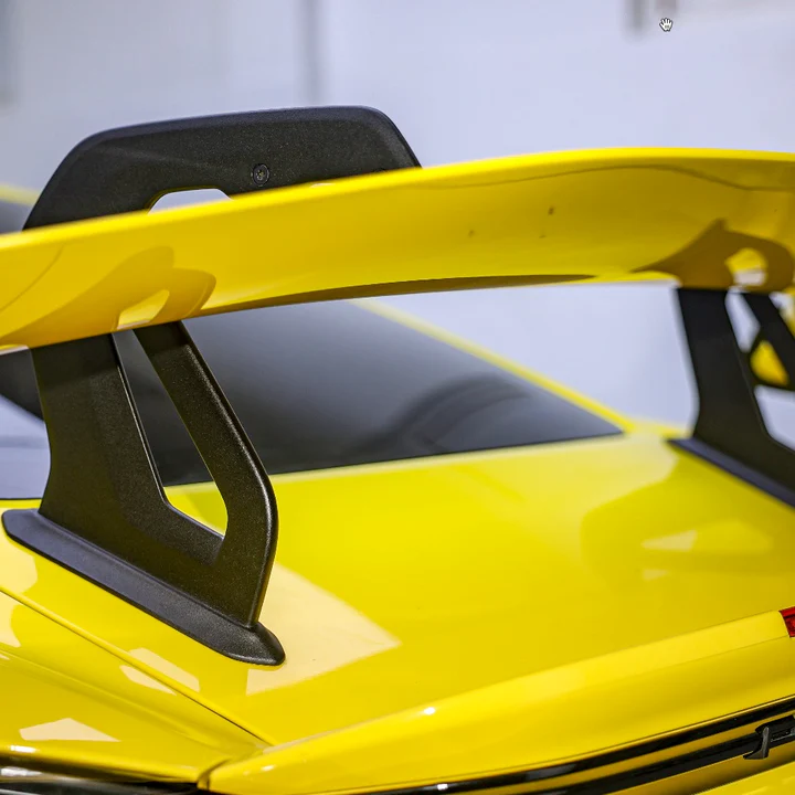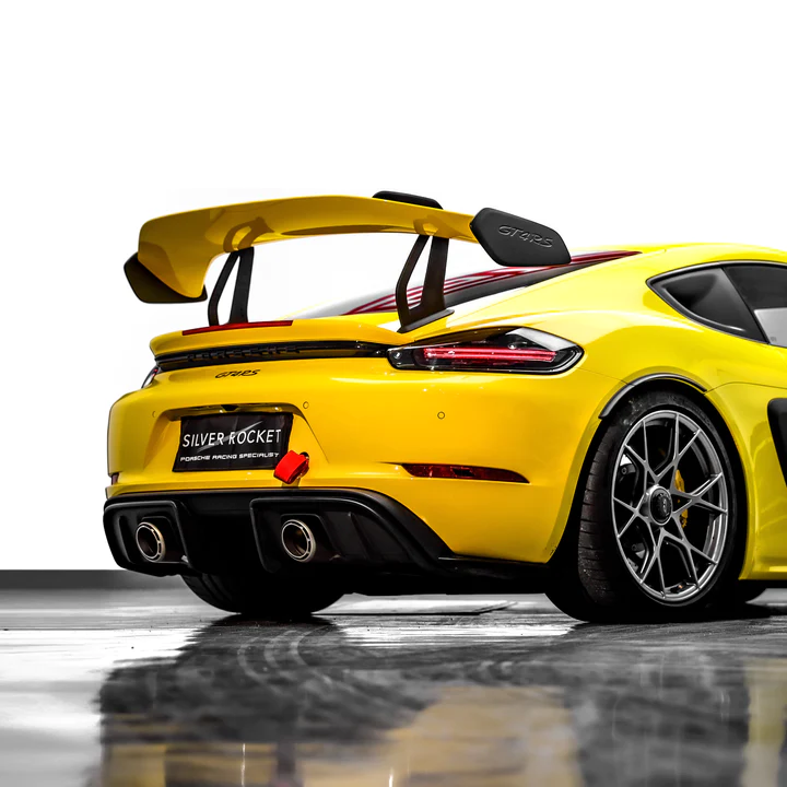 Inspiriert von den Porsche GT4 RS Clubsport-Rennwagen ist der SilverRocket Dry Carbon Fiber Clubsport-Heckflügel der LEICHTESTE und STÄRKSTE Clubsport-Heckflügel für Ihren Porsche 718 GT4 RS.