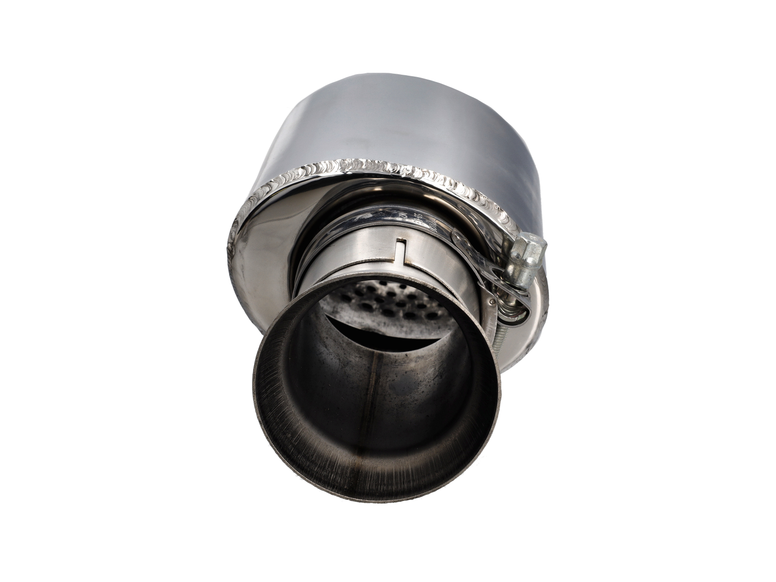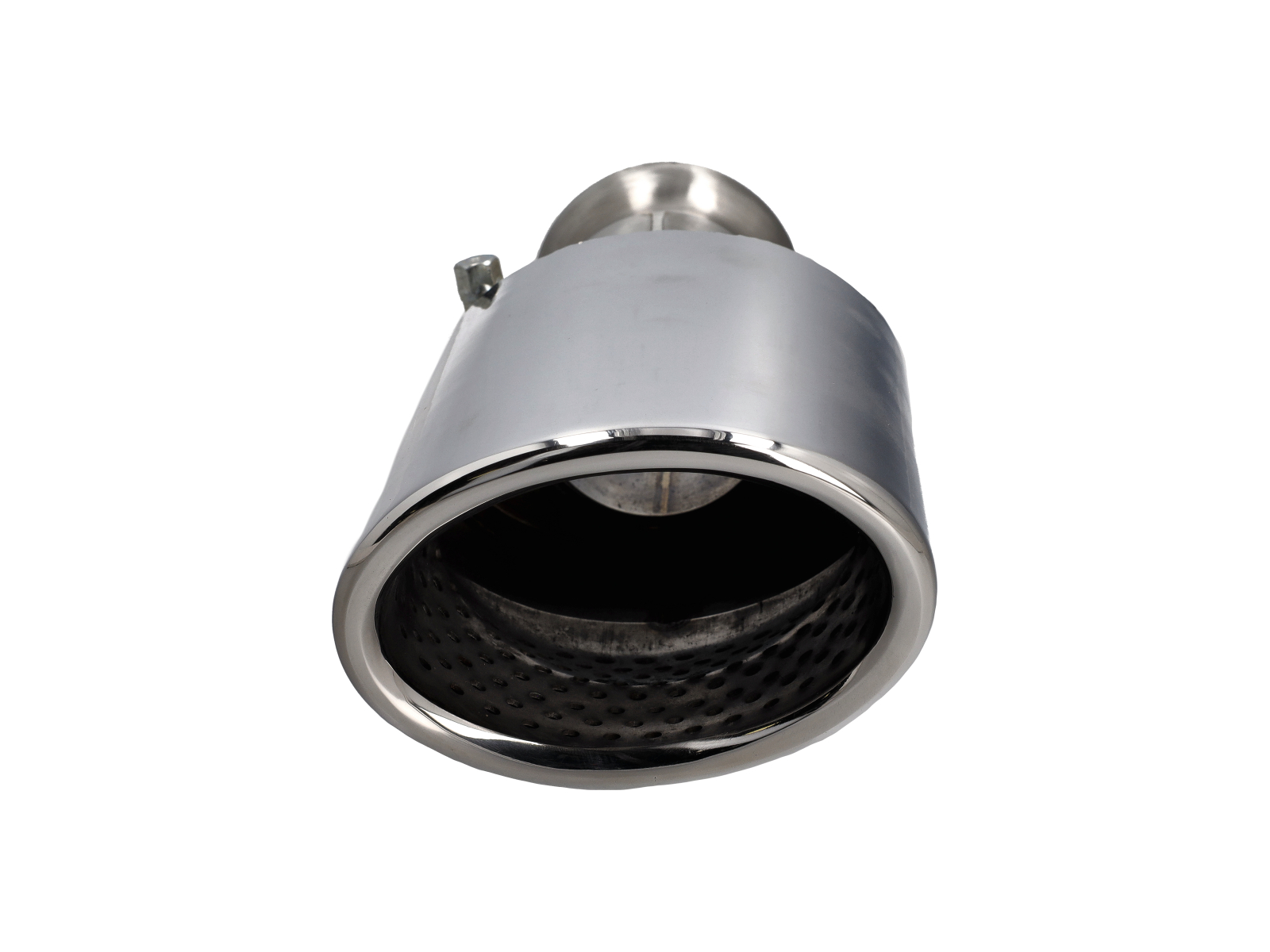 CARGRAPHIC Endrohr 115x85mm oval, Schlitzschnitt, doppelwandig mit perforiertem Einsatz – hochglanzpoliert