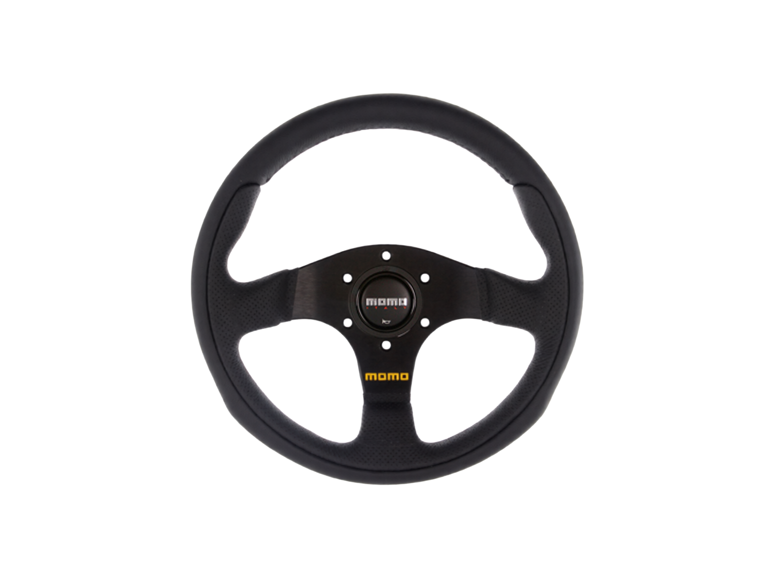 Mit einem geformten Griff, schwarzen Speichen, einem passenden schwarzen MOMO Italy-Hupenknopf und einem kontrastierenden gelben MOMO-Logo auf der mittleren Speiche ist das Team ein fantastisches Lenkrad, das durch sein schlichtes Design wahre Schönheit erreicht.