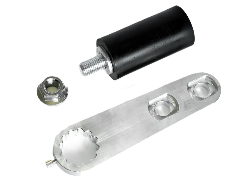 - Der einstellbare Versatz des Reaktionsarms, der präzisionsgefertigt aus Flugzeugaluminium (7075) ist, funktioniert mit (fast) allen Rädern.