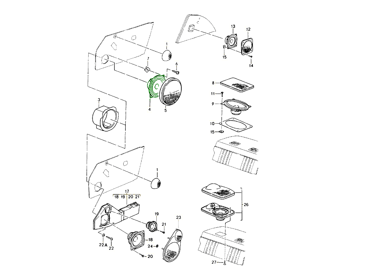 Dies ist der primäre (größte) Lautsprecher, der an der Unterseite der Türkarte angebracht ist.