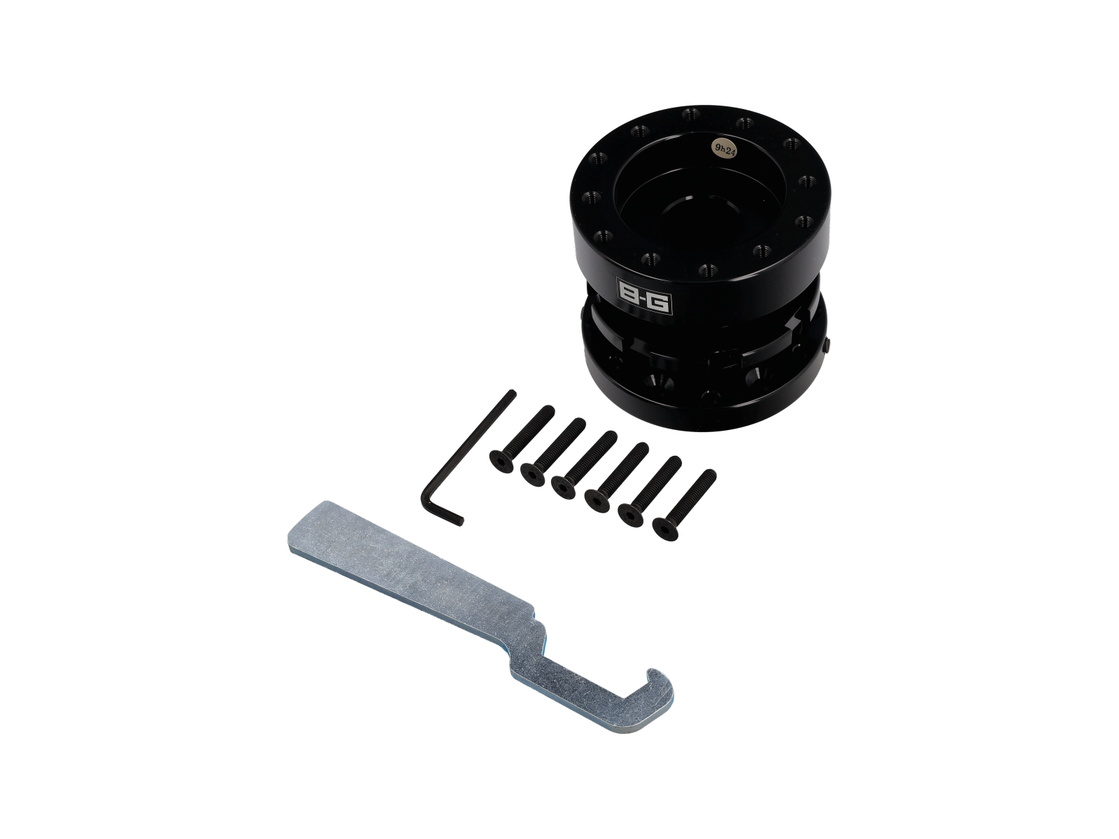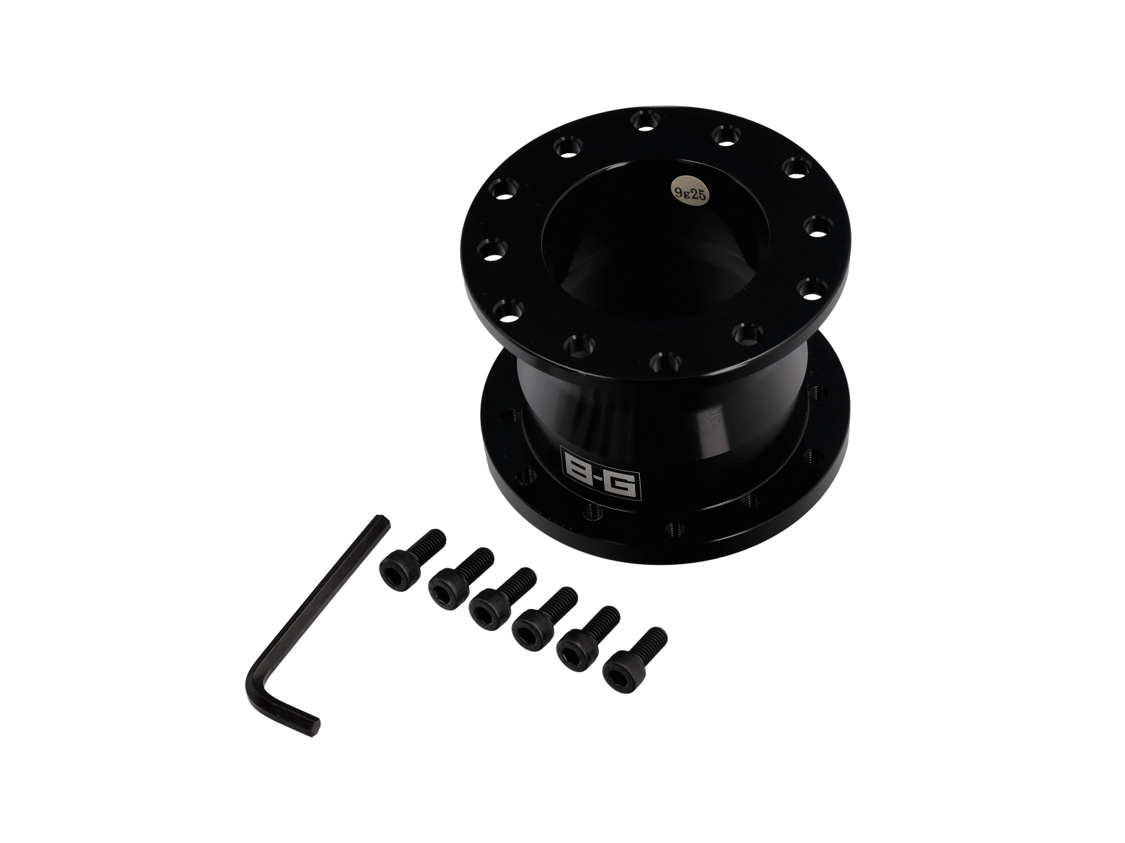 Das Schnellspannsystem von BG Racing verwendet ein 6 x 70 mm Lochmuster, das zwischen das Lenkrad und die Nabe passt und das Lenkrad ungefähr 50 mm nahe an den Fahrer bringt.