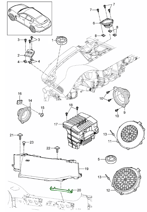 Porsche 970 Panamera 2010-16 (Optionscode: 441 Soundpaket Basis / 490 Soundsystem 'ASK')