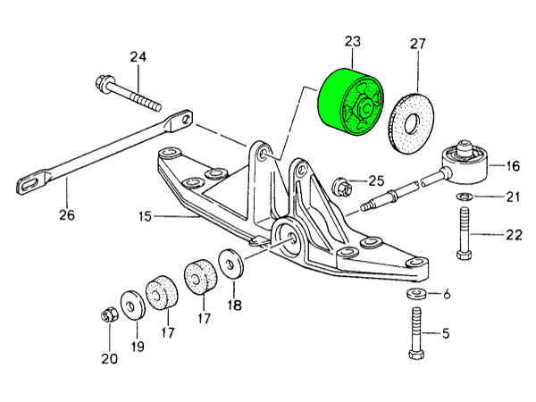 Die Teilenummer 955 349 337 00 ist eine Gummilagerung/Stützhalterung für den Achsantrieb/das Differential der Vorderachse, die das vordere Differential (Vorderachsantriebseinheit) vom Fahrgestell isoliert und stützt. Es gibt 3 Stück davon pro Fahrzeug. Preis pro Stück