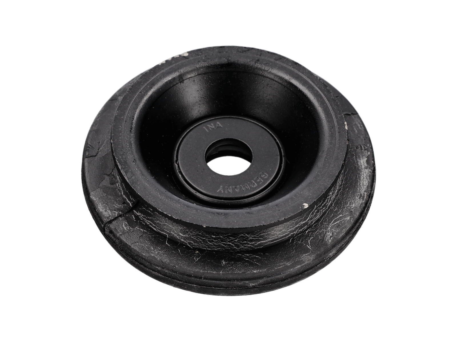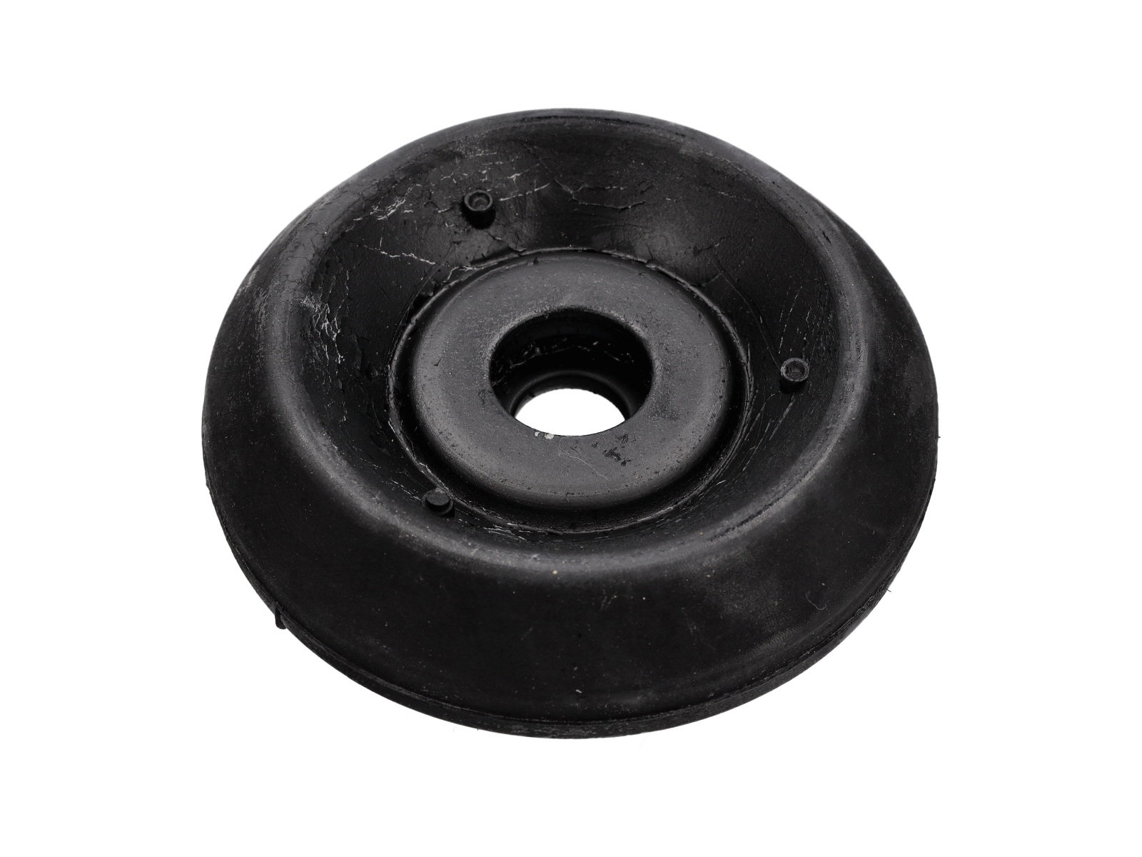 Federbeinlager für frühe Porsche 924, 924S und 944 Modelle. Dieses Bauteil wird zwischen Stoßdämpfer und Karosseriestruktur am oberen Ende des Federbeins montiert und dient der Schwenklagerung und reibungslosen Drehung des Federbeins. Gleichzeitig dämpft es Vibrationen und absorbiert Lastkräfte.