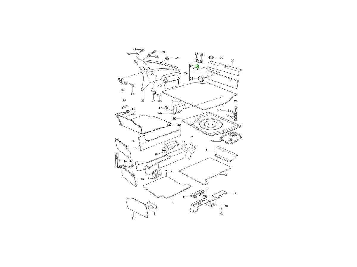 Dieses Bauteil dient zur Befestigung der Werkzeugablage, typischerweise im Reserverad- oder Gepäckraumbereich, und gewährleistet so, dass Werkzeuge und Zubehör während der Fahrt sicher verstaut bleiben.