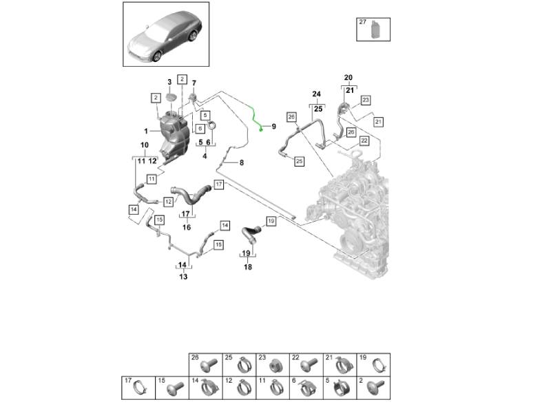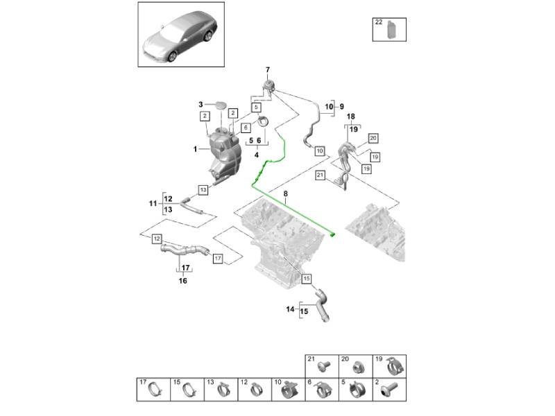 Die Entlüftungsleitung für den Kühlmittel-Ausgleichsbehälter ist ein Original-Porsche-OEM-Schlauch, der den Kühlmittel-Ausgleichsbehälter mit dem Kühlkreislauf des Motors verbindet. Diese Entlüftungsleitung ermöglicht es dem System, Luft- und Druckänderungen auszugleichen und überschüssiges Kühlmittel innerhalb des geschlossenen Kühlkreislaufs abzuleiten. Durch die Unterstützung einer optimalen Belüftung und des Kühlmittelrückflusses trägt sie zu stabilen Motorbetriebstemperaturen und einer zuverlässigen Kühlleistung bei. Gefertigt nach Porsche-Spezifikationen, gewährleistet sie passgenau, langlebig und beständig gegen Hitze und Kühlmittel bei Porsche Panamera Modellen.