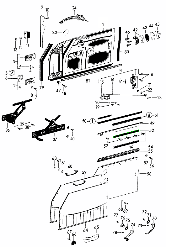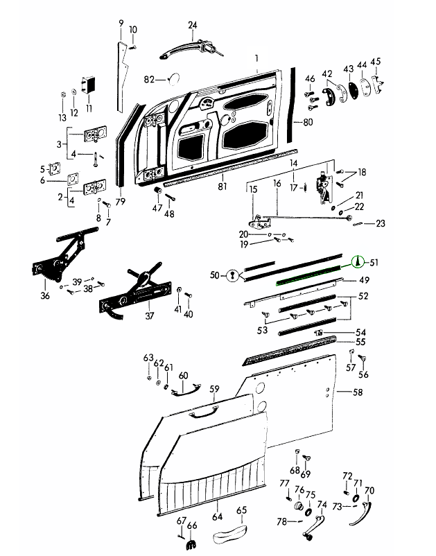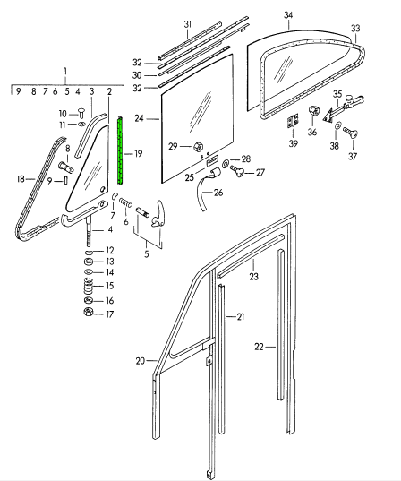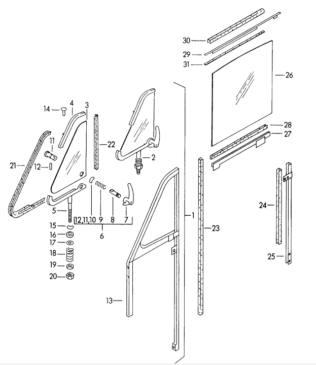 Für 356A Coupés ohne Ausstellfenster sind zwei pro Tür erforderlich. Für 356A, 356B, 356C Coupés und Cabriolets mit Ausstellfenstern ist eins pro Tür erforderlich.