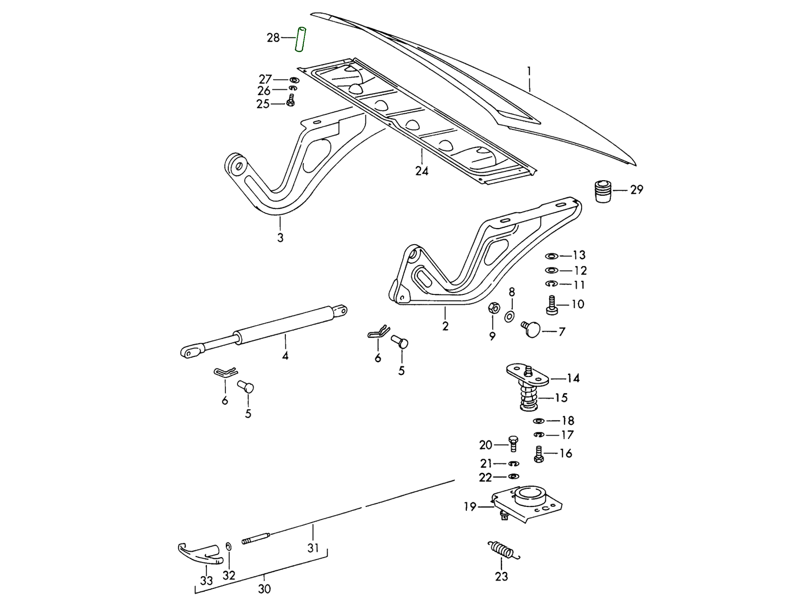 Präzisionsgefertigte Scharniere und Halterungen sorgen für sanfte Öffnungsbewegungen und dauerhafte Stabilität. Ideal für klassische und moderne Porsche-Modelle.