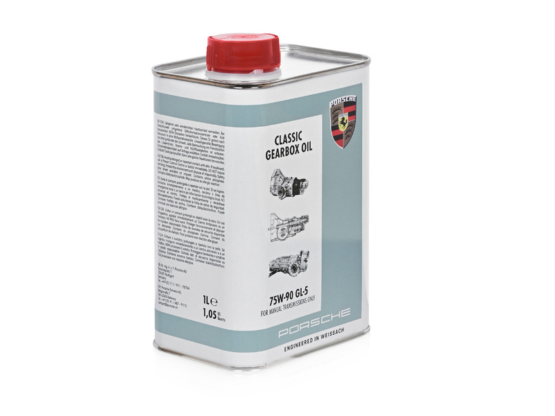 Porsche Classic Schaltgetriebeöl (75W-90 GL-5) ist ein Hochleistungsöl, geeignet für Heavy-Duty-Getriebe in den Fahrzeugen 924, 928, 944 und 968 sowie für die Getriebe aller klassischen 911-Modelle (bis max Typ 996) und im Porsche Boxster Typ 986.