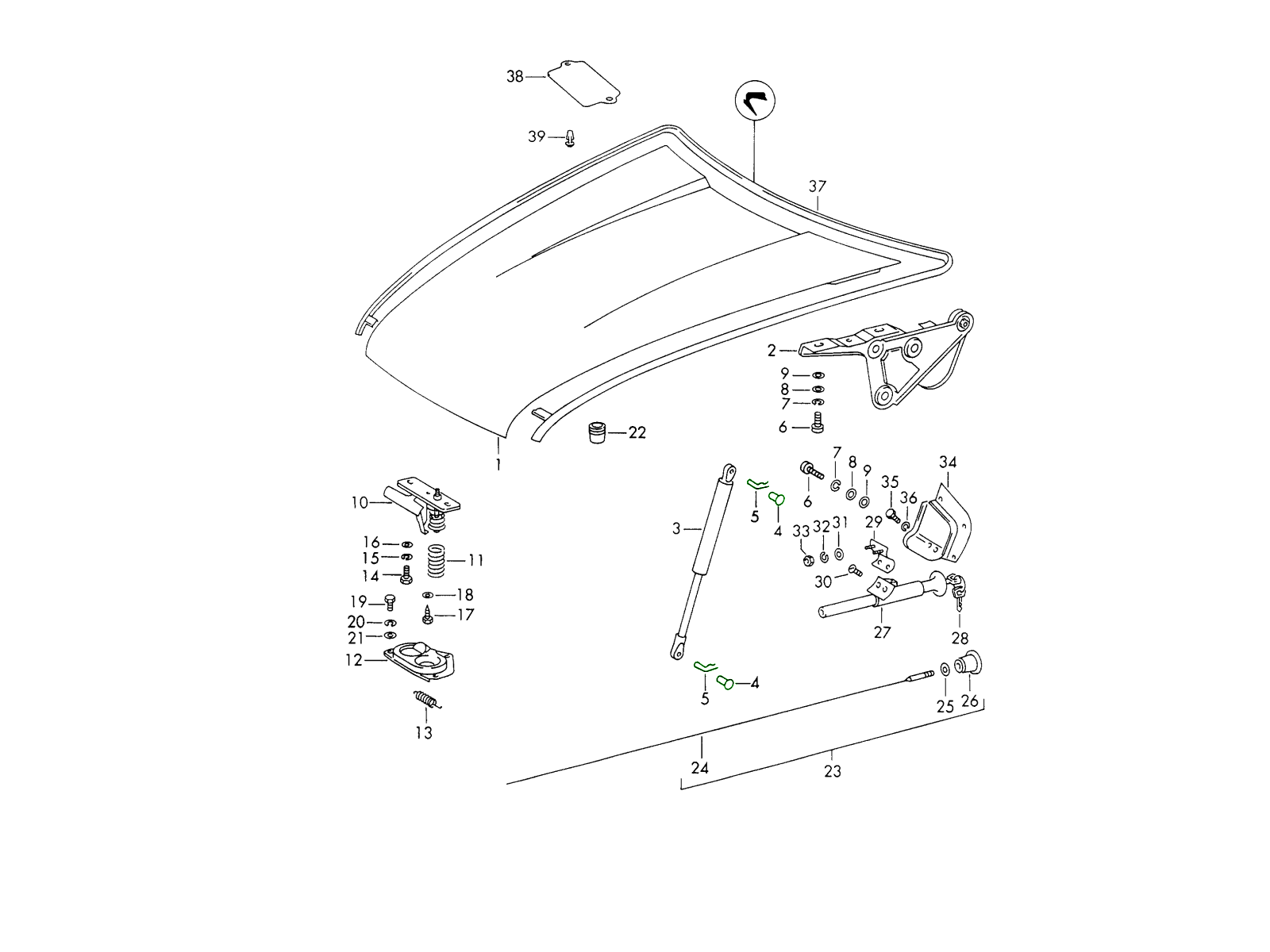 Klassische Porsche-Frontklappendämpfer