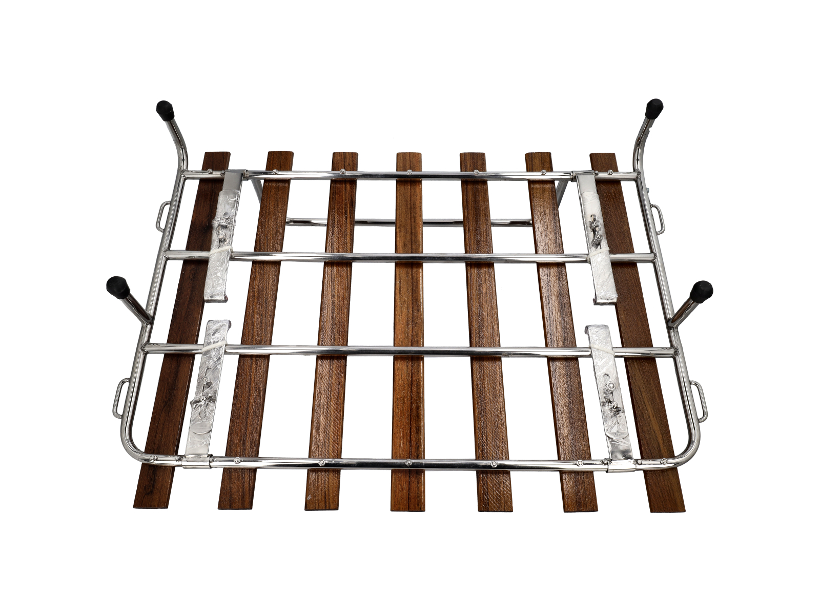 Gepäckträger aus poliertem Edelstahl mit Chromoberfläche bieten höchste Haltbarkeit und eine klassische Porsche-Ästhetik. Ideal für den Straßengebrauch und Ausstellungsfahrzeuge.