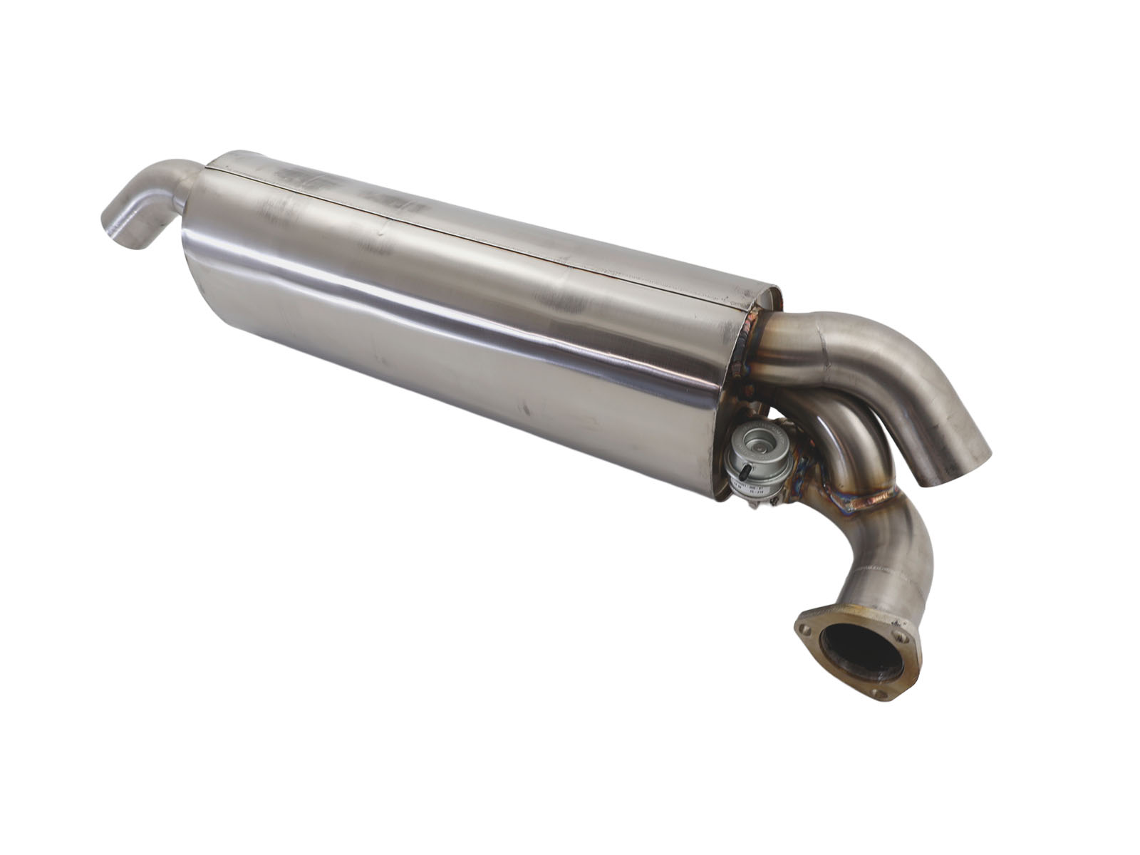 Der DesignTek 1 IN 2 OUT Sportauspuffschalldämpfer mit Klappen ist ein Hochleistungs-Upgrade für klassische Porsche 911 Modelle der Baujahre 1975 bis 1989. Dieser Endschalldämpfer vereint moderne Abgastechnik mit dem klassischen Charakter luftgekühlter Fahrzeuge und verbessert sowohl Klang als auch Leistung bei gleichzeitiger Kompatibilität mit der originalen Abgasanlage.