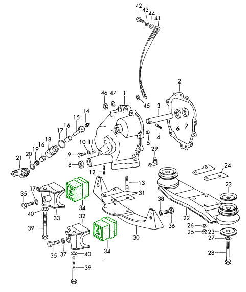 Dienen als Getriebehalterungen in 1972-1986 911/912/930 (nur 915/930 Getriebe)