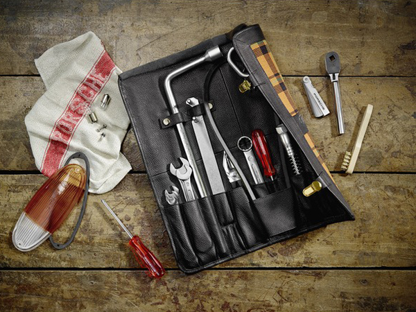 Ein orange karierter Stoff (Tartan) prägt das äußere Erscheinungsbild der neuen Tasche. Die Optik greift das Design der 914-Sitzbezüge auf. Die Werkzeugtasche trägt außerdem auf der Vorderseite ein geprägtes Porsche Wappen, wie es einst auf dem Hupenknopf der Sechszylinder-Version 914/6 verwendet wurde. Wie alle Werkzeugtaschen, die Porsche Classic neu aufgelegt hat, verfügt auch die Version für den 914 über ein hochwertiges Werkzeugset. Jedes Teil hat seinen vorgesehenen Platz.