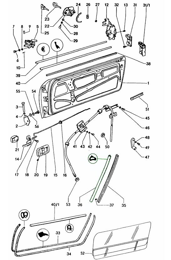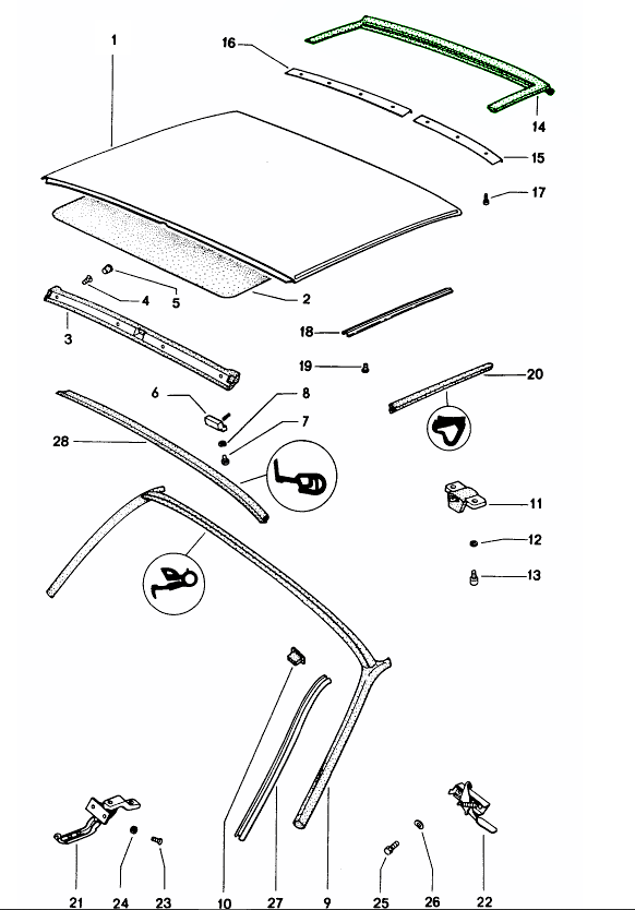 Neue Seriendichtung für die Hinterkante der Scheibe, die in den Aluminiumkanal des Überrollbügels eingebaut wird. Hergestellt mit einer versiegelten Lippe, die das Eindringen von Wasser in den Innenraum verhindert.