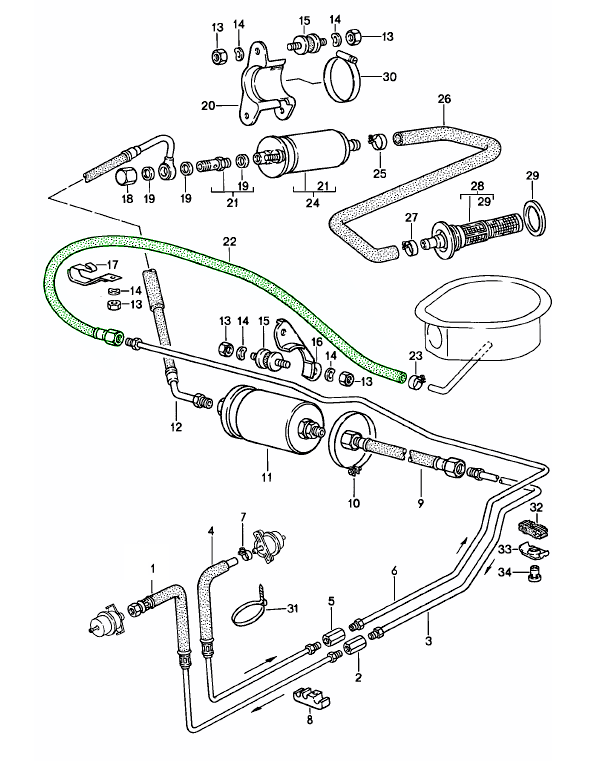 - Umfangreiche Auswahl an Porsche Kraftstoffleitungen und Entlüftungsschläuchen.