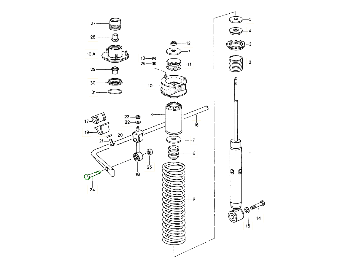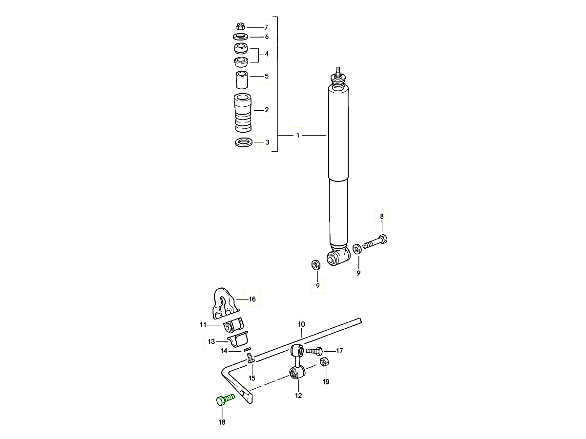 Hintere Koppelstangen und Buchsen dienen als Verbindungspunkte, die es dem Stabilisator ermöglichen, Ihren Porsche bei Kurvenfahrten zu stabilisieren.