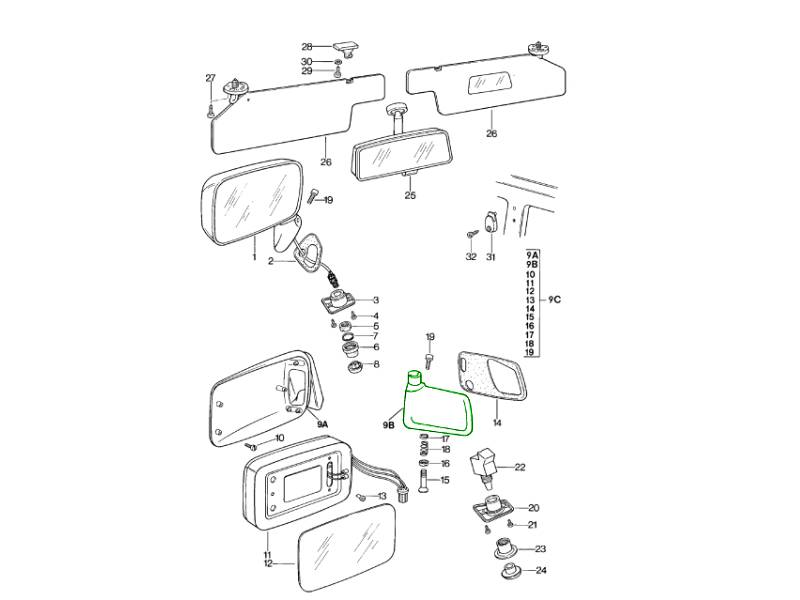 Unser Sortiment umfasst komplette Außenspiegelbaugruppen, Innenspiegel, Gehäuse, Glasersatz und Verstellmechanismen, die alle nach OEM-Spezifikationen gefertigt sind und für nahtlose Integration und dauerhafte Leistung sorgen. Ob Sie einen klassischen 911 restaurieren, beschädigte Komponenten reparieren oder auf einen modernen elektrischen Spiegel umrüsten möchten – Design911 bietet hochwertige Original- und Reproduktionsspiegellösungen für jeden Porsche.