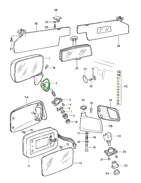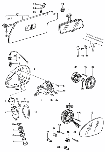 OEM- und Reproduktions-Außenspiegel von Porsche für Fahrer- und Beifahrerseite. Erhältlich in manueller, elektrischer und beheizter Ausführung, passend für alle Modelle.
