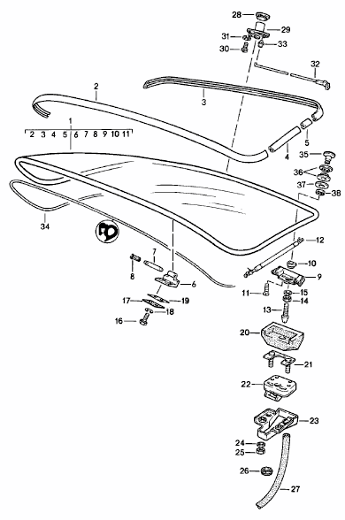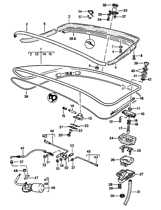 Klassische Porsche-Kofferraum- und Heckriegelteile