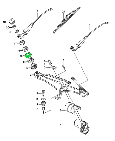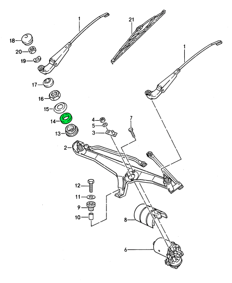Dieses Kit enthält die 2 Gummibuchsen an der Basis der Wischerarme, die mit dem Kurbelmechanismus verbunden sind. Sie sind beim Wechseln der Wischerarme unbedingt erforderlich.