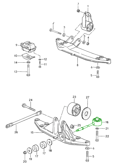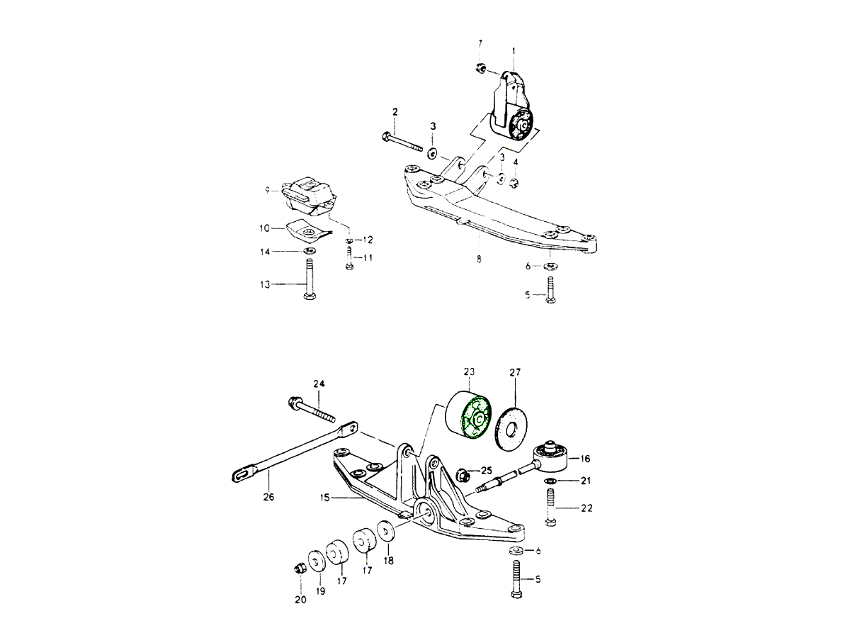 Zu diesem Teil gehört eine optionale Stützscheibe mit integriertem Einsatz, die in die hohle Buchse passt und eine schnelle und einfache Einstellung der Steifigkeit ermöglicht. Dieses Teil ersetzt die ursprüngliche Buchse (OE-Nummer: 99337521900) in der Halterungsbaugruppe (OE-Nummer: 96437502301), die bei Fahrzeugen mit Allradantrieb zu finden ist.