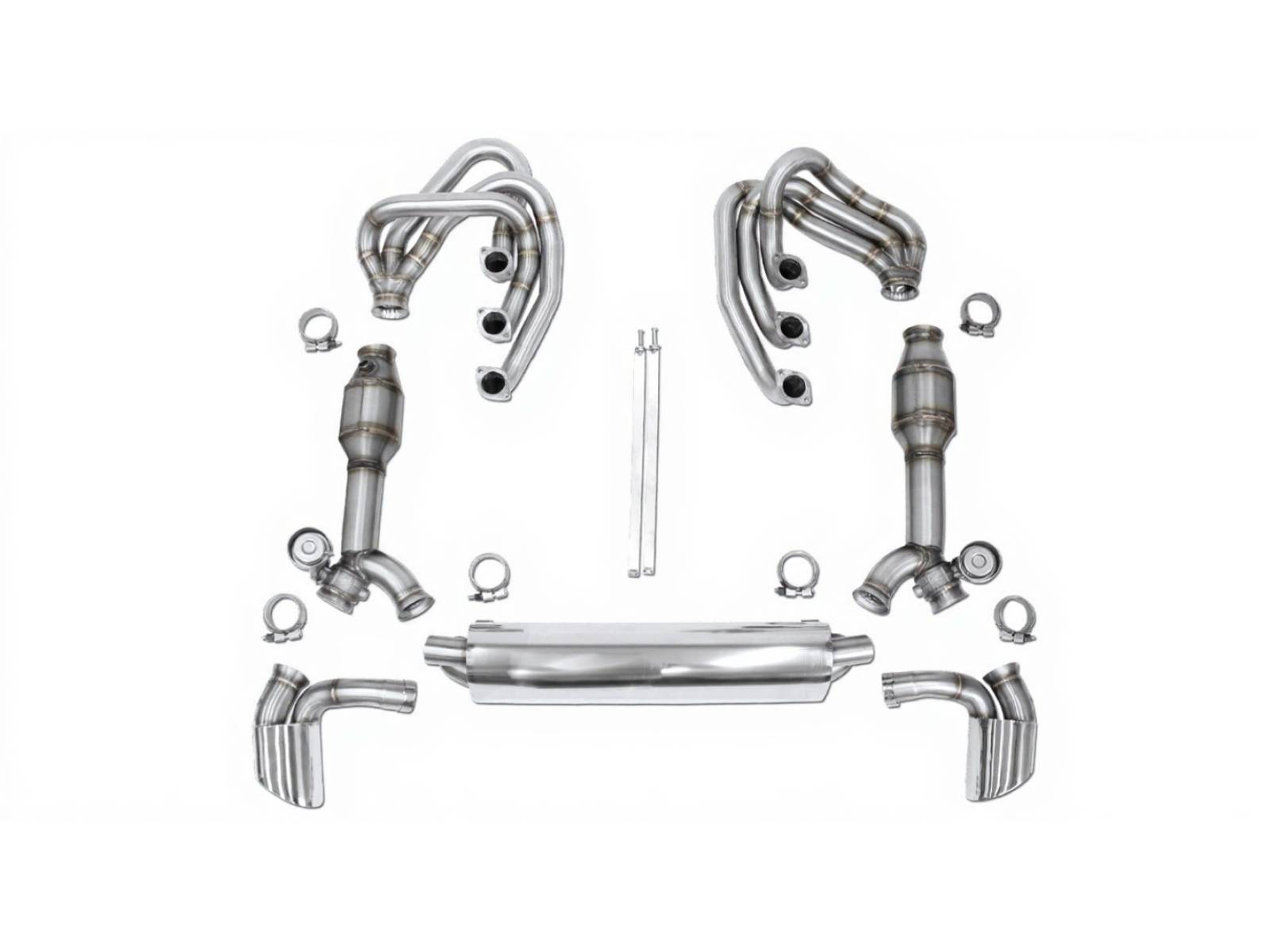 CARGRAPHIC GT Sport Auspuffanlage Rückbau mit ID45 GT Krümmersatz, mit / ohne 2x200cpsi Katalysatoren, mit Heizung und Auslassklappen - zur Verwendung mit OEM GT3 Endschalldämpfer.