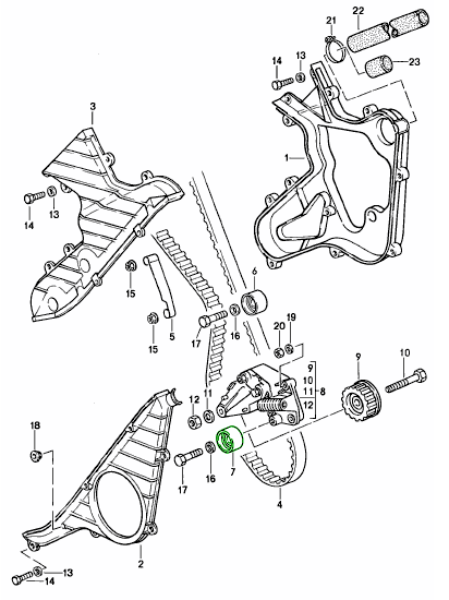 3. Riemen: Zahnriemen und Nebenaggregateriemen (Serpentinen- oder Keilriemen) dehnen sich mit der Zeit und verschleißen. Ein gerissener Zahnriemen kann zu katastrophalen Motorschäden führen, insbesondere bei Interferenzmotoren wie dem 944. Die Nebenaggregateriemen sorgen dafür, dass beispielsweise Lichtmaschine, Klimaanlage und Servolenkung einwandfrei funktionieren. Reißen sie, gehen diese Funktionen verloren – und es besteht die Gefahr einer Überhitzung des Motors, wenn die Wasserpumpe von einem dieser Riemen angetrieben wird.