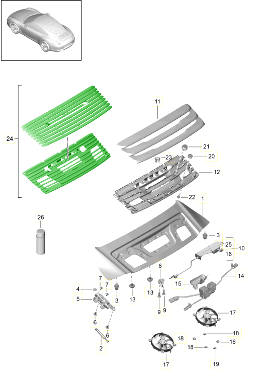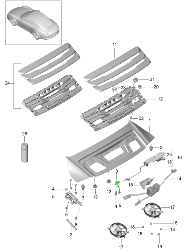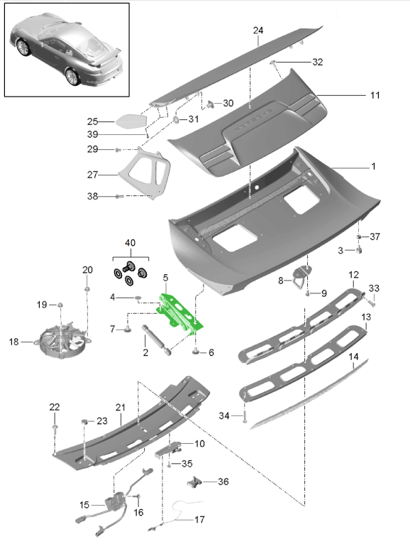 Klassische Porsche-Kofferraum- und Heckriegelteile