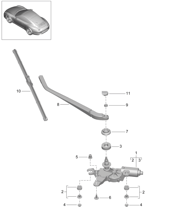 Dies passt für Porsche 911 991 mit dem Wischermotor in der Heckscheibe.