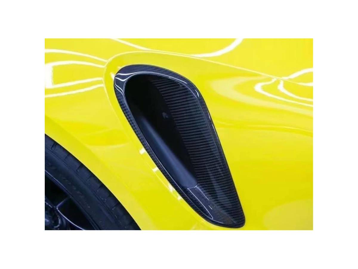 - Die hinteren Lufteinlässe sind ein optisch prägendes Element des 992-Designs. Beschädigte oder verblasste Zierteile fallen sofort auf – Carbonfaser verleiht dem Fahrzeug ein hochwertiges, werksseitig überragendes Aussehen.