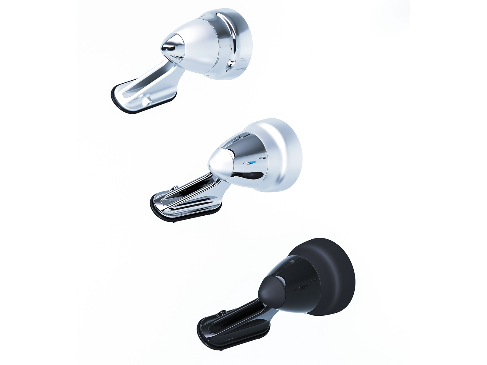 Erhältlich in poliertem oder satiniertem Aluminium sowie in mattschwarzer Ausführung.