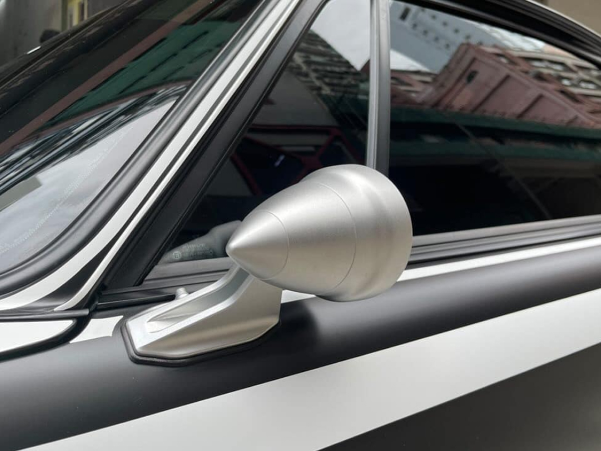 Maßgeschneiderte, an den Seitenfenstern des Porsche 911 montierte Bullet-Spiegel, vollständig maßgefertigte CNC-Spiegel, die sich einfach in die Kunststoff-Ausstellfenster des Porsche 911 einbauen lassen (werden nicht mit Kunststofffenstern geliefert). Im Lieferumfang sind Dichtungen, Halterungen und Abdeckungen enthalten, damit Sie die Montage einfach und sauber durchführen können. Sie müssen nur zwei Löcher in die Kunststoff-Ausstellfenster bohren und dann die Spiegel montieren.