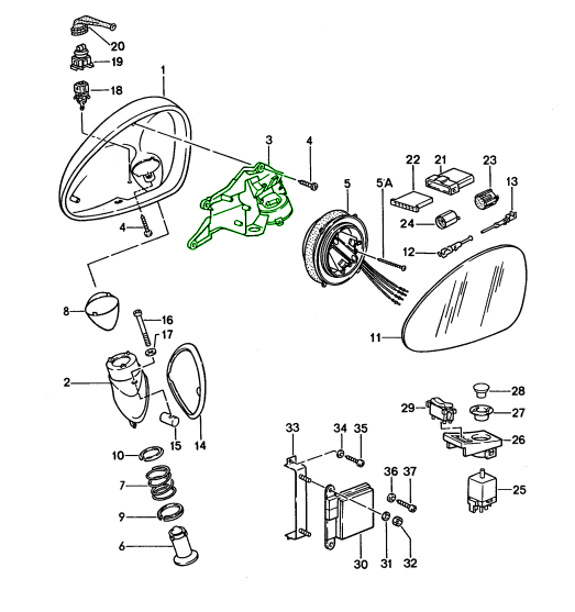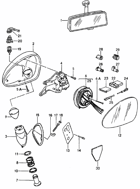 OEM- und Reproduktions-Außenspiegel von Porsche für Fahrer- und Beifahrerseite. Erhältlich in manueller, elektrischer und beheizter Ausführung, passend für alle Modelle.