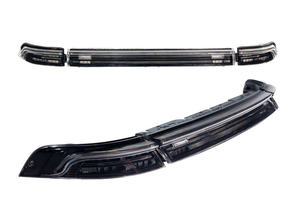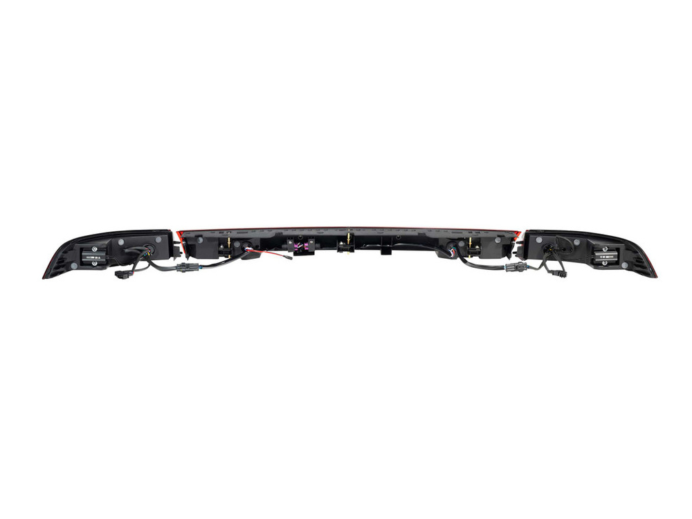 Volle Funktionalität: Der integrierte Lichtleiter entlang der Oberkante hebt den Lippenspoiler hervor und dient gleichzeitig als Parklicht. Vier hochintensive rote Optiken auf jeder Seite sorgen für Brems- und gelbe Blinker, während die Mitte über zwei leistungsstarke weiße LED-Rücklichter und optionale rote Nebelschlussleuchten verfügt. Alle Elemente sind DOT-konform für Sicherheit und Sichtbarkeit.
