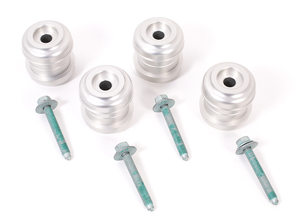 Werkseitige Gummiaufhängungen sind sehr flexibel und können den extremen Belastungen, denen sie unter Hochleistungsfahrbedingungen ausgesetzt sind, nicht standhalten. Wenn sich diese Halterungen biegen, ändert sich die gesamte Aufhängungsgeometrie, wodurch das Auto instabil und unberechenbar wird. Ein sehr beliebtes Aufrüstungs-Upgrade besteht darin, diese Buchsen durch solide Halterungen zu ersetzen, wie sie bei den Werksrennwagen zu finden sind. Diese Kits sind aus Billet-Aluminium gefertigt und werden mit der erforderlichen Hardware für die Installation geliefert.