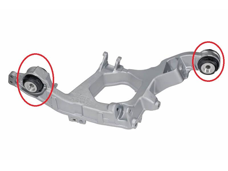 - Unterstützt die Stabilität und Handhabung des Hecks – Da der Hilfsrahmen die Geometrie der Hinterradaufhängung (Arme, Lenker, Differential usw.) hält, können abgenutzte oder weiche Buchsen Abweichungen in der Ausrichtung unter Last zulassen, was zu einer Verringerung von Präzision und Stabilität führt.