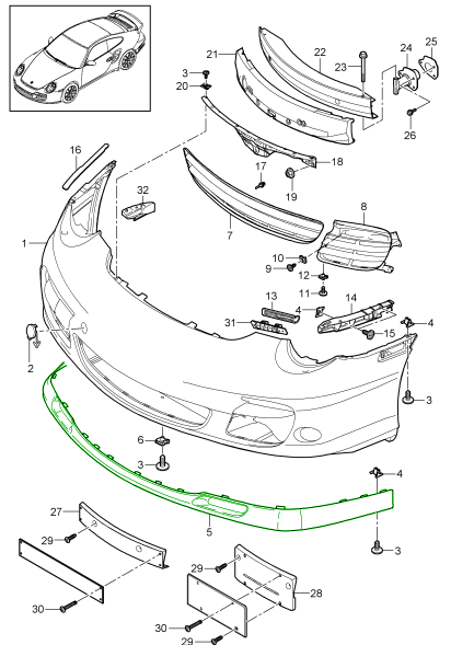 Hinweis: Der Turbo-Unterspoiler kann in Exterieurfarbe lackiert werden.