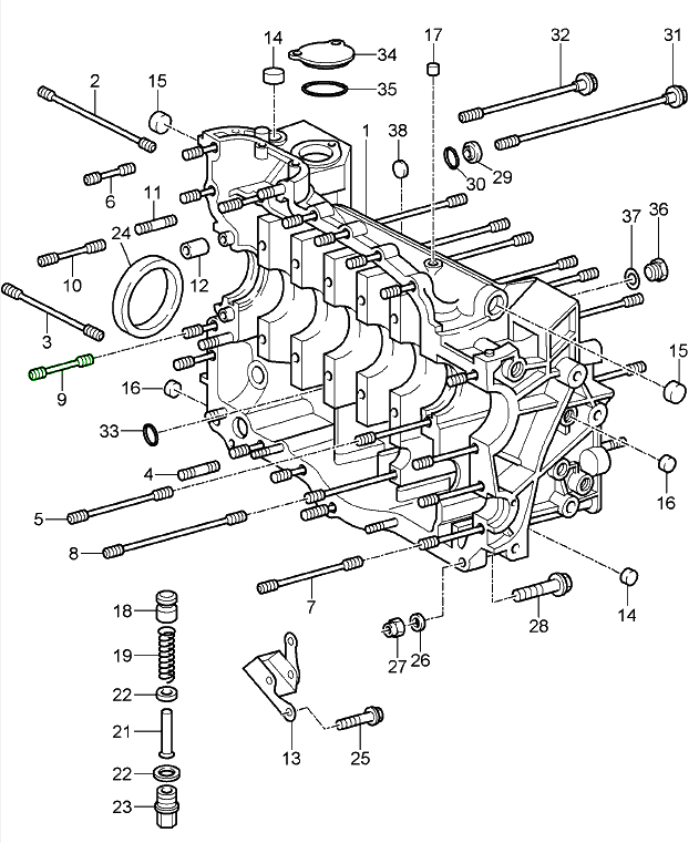 Durch den Austausch alter oder überbeanspruchter Schrauben und Bolzen bei jeder Überholung oder größeren Wartung wird sichergestellt, dass der Motor Ihres Porsche strukturell intakt und dicht bleibt.