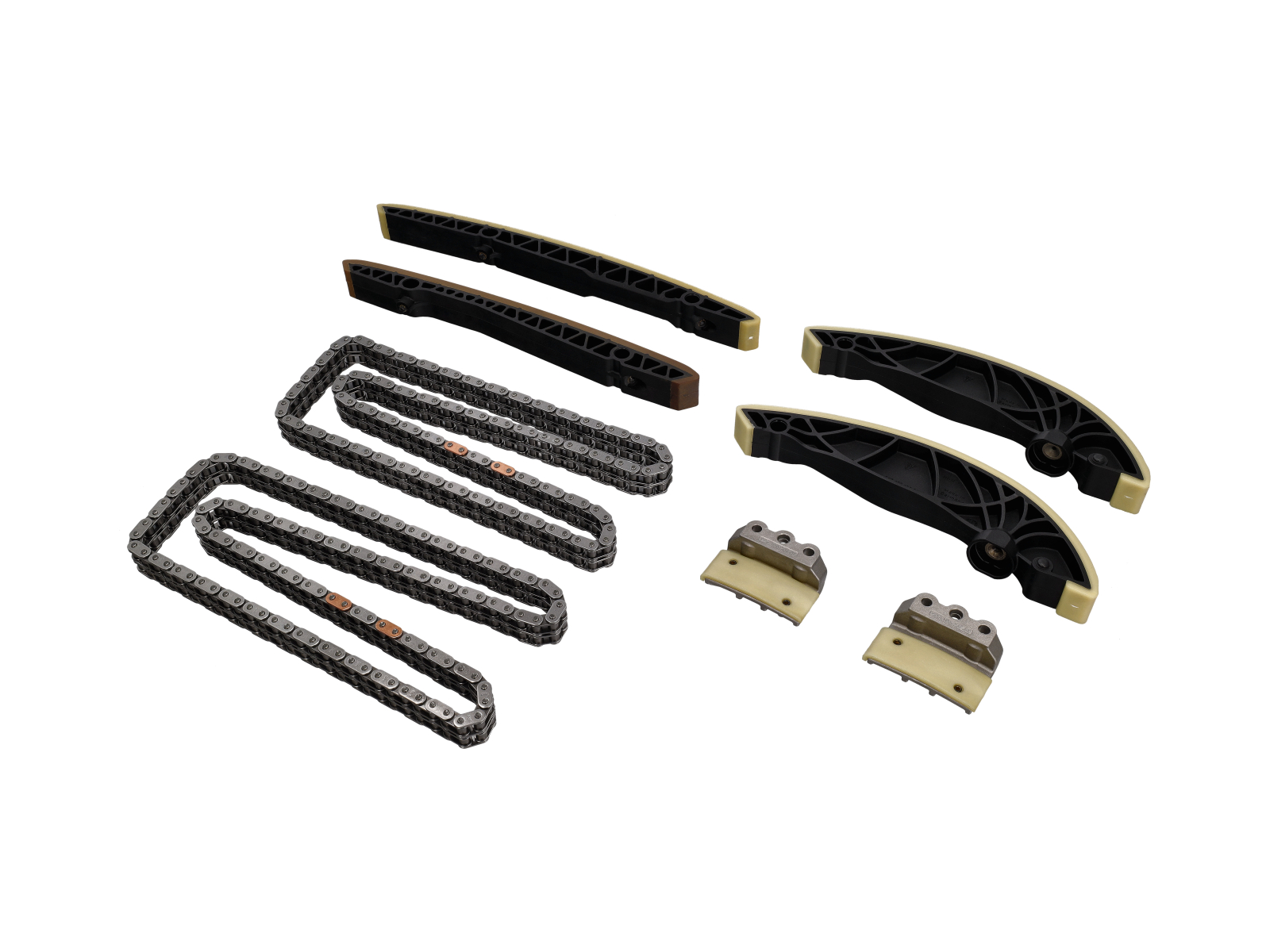 Dieser umfassende Steuerketten-Überholungssatz beinhaltet die Duplex-Steuerkette sowie Führungsschienen, Spannvorrichtung und alle weiteren Komponenten des Steuerkettensystems. Er ist für den Porsche 911 997 Turbo 3.6L M97.70 (Baujahre 2007–2009) konzipiert und gewährleistet die vollständige Überholung Ihres Steuerkettenantriebs.