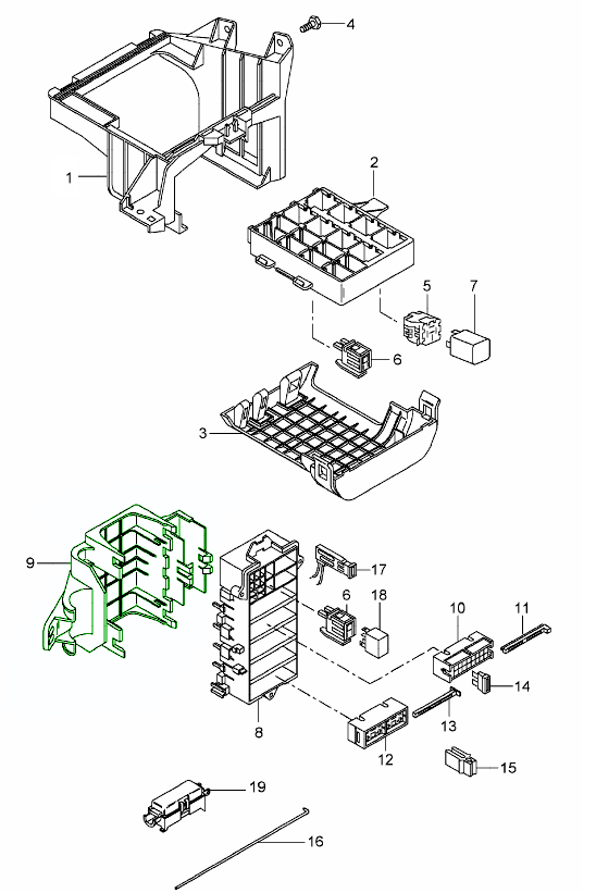 - Relais: Fungieren als elektrische Schalter, die die Stromversorgung wichtiger Komponenten wie Kühlerlüfter, Kraftstoffpumpe, Scheinwerfer und Zündsystem steuern.