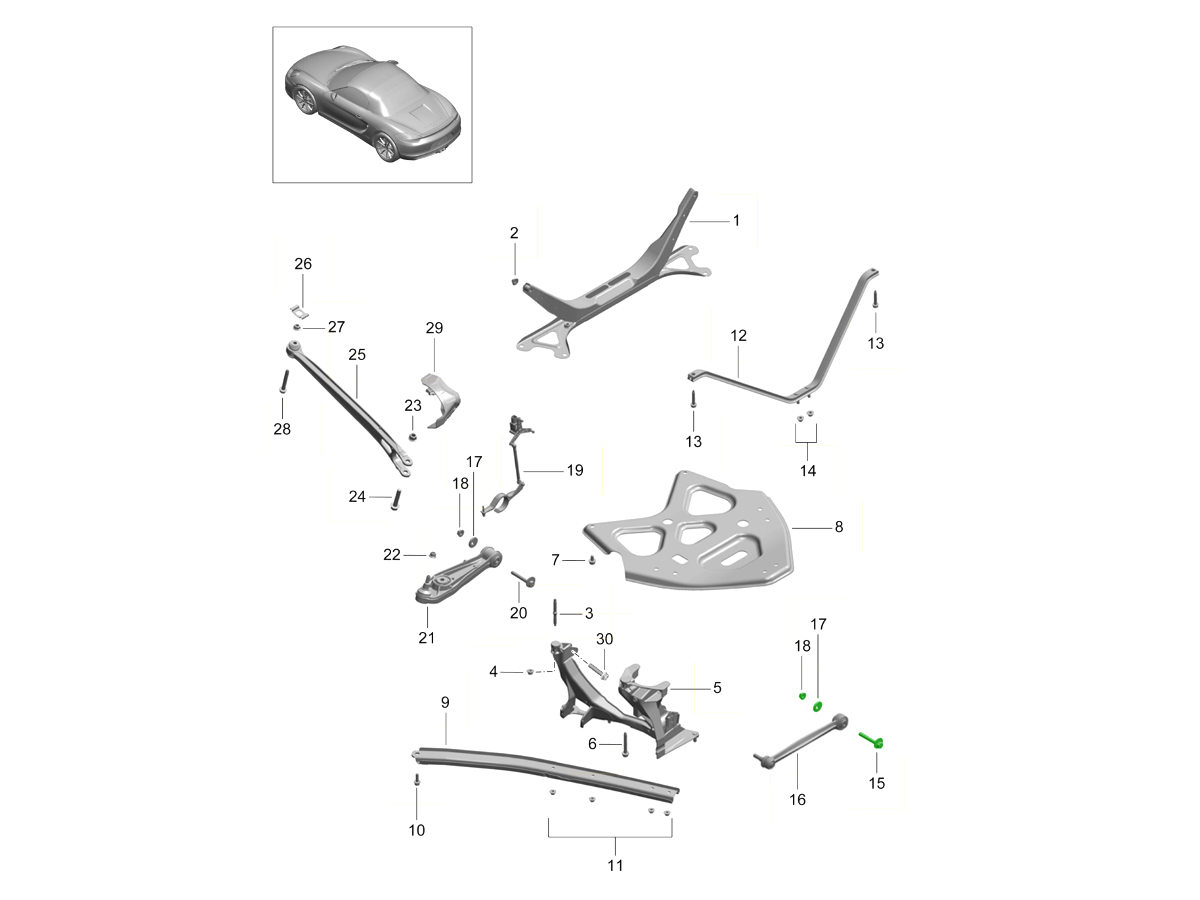 Die hinteren Querlenker sind wichtige Fahrwerkskomponenten, die die präzise Achsvermessung, das ausgewogene Fahrverhalten und die Stabilität Ihres Porsche in Kurven und beim Bremsen gewährleisten. Sie verbinden das Fahrgestell mit den Hinterradnaben und ermöglichen so kontrollierte Federbewegungen bei gleichzeitiger korrekter Positionierung der Räder zur Straße. Hochwertige Querlenker sorgen für gleichmäßigen Reifenkontakt, optimale Geometrie und die reaktionsschnelle, agile Leistung, die das Handling Ihres Porsche ausmacht.