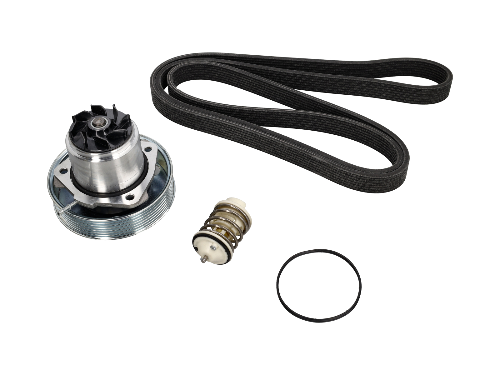 Komplettes Wasserpumpen-Set – Wasserpumpe, Thermostat, Keilriemen und Dichtungen für eine vollständige Überholung des Kühlsystems