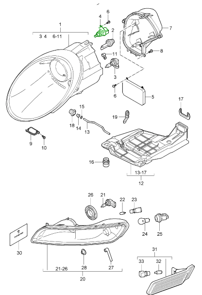 Ohne funktionsfähige Scheinwerferteile können die Sicht, die Sicherheit und die Designintegrität Ihres Porsche beeinträchtigt sein.